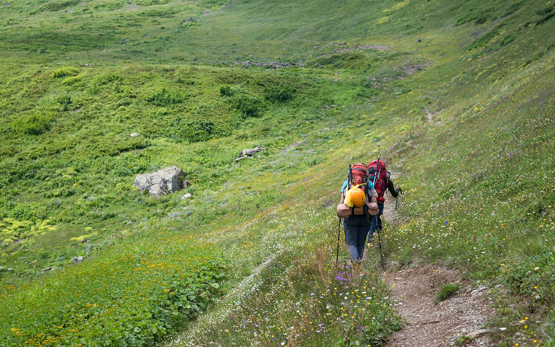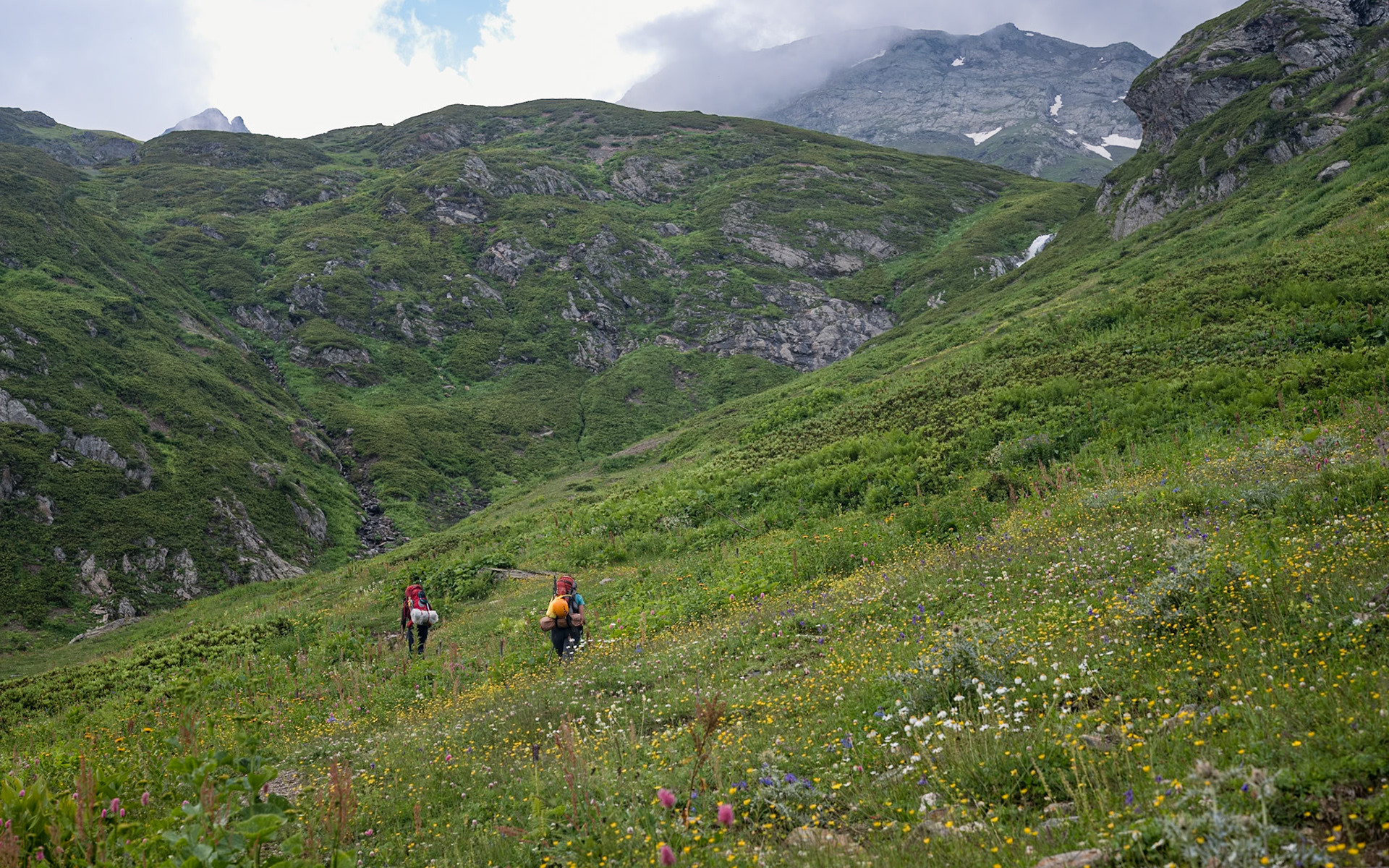 Hiking the Adishichala Valley on the way up to Chkhunderi Pass.