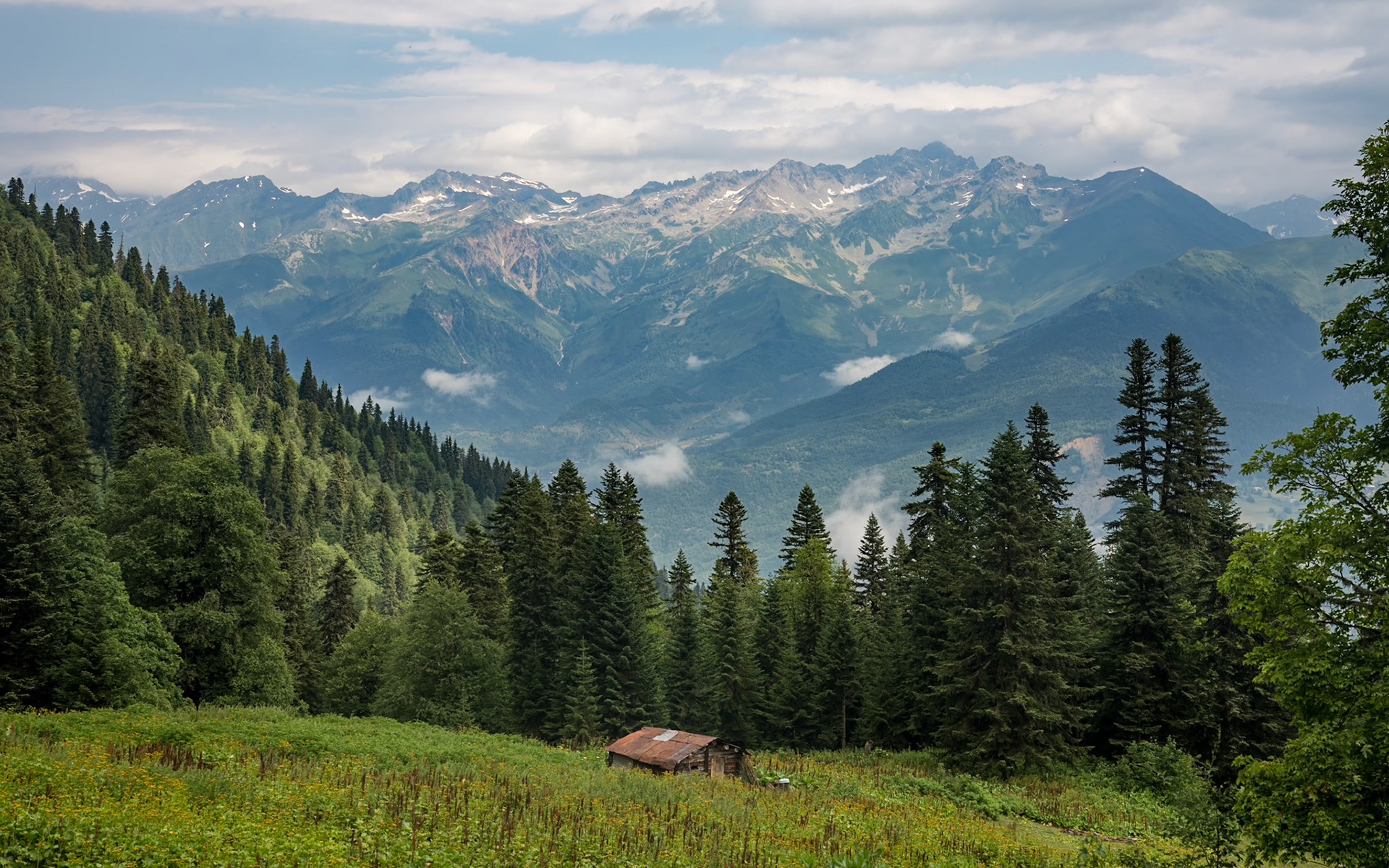 A litle bit over the Chkhunderi Pass there are amazing views of the Shkhara Ridge, the highest mountains in Georgia.